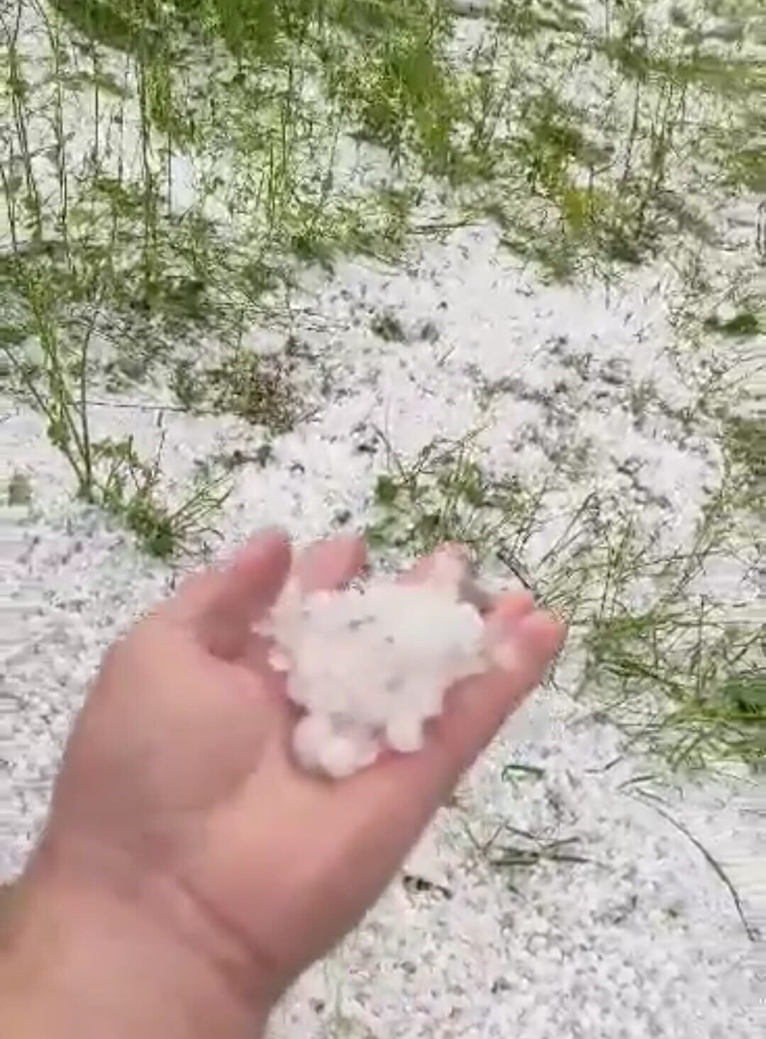 Osmaniye’nin Kadirli ilçesinde dolu yağışı sonrası çevre beyaza büründü.