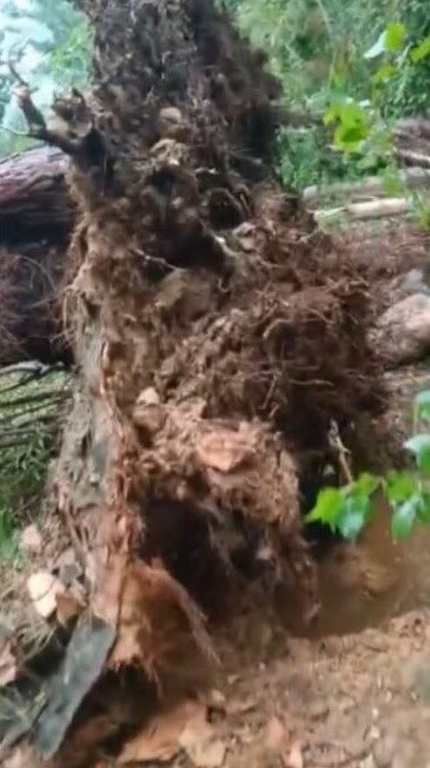Osmaniye’de yağmurla birlikte etkili olan fırtına nedeniyle Düziçi ilçesinde ağaçlar köklerinde söküldü.