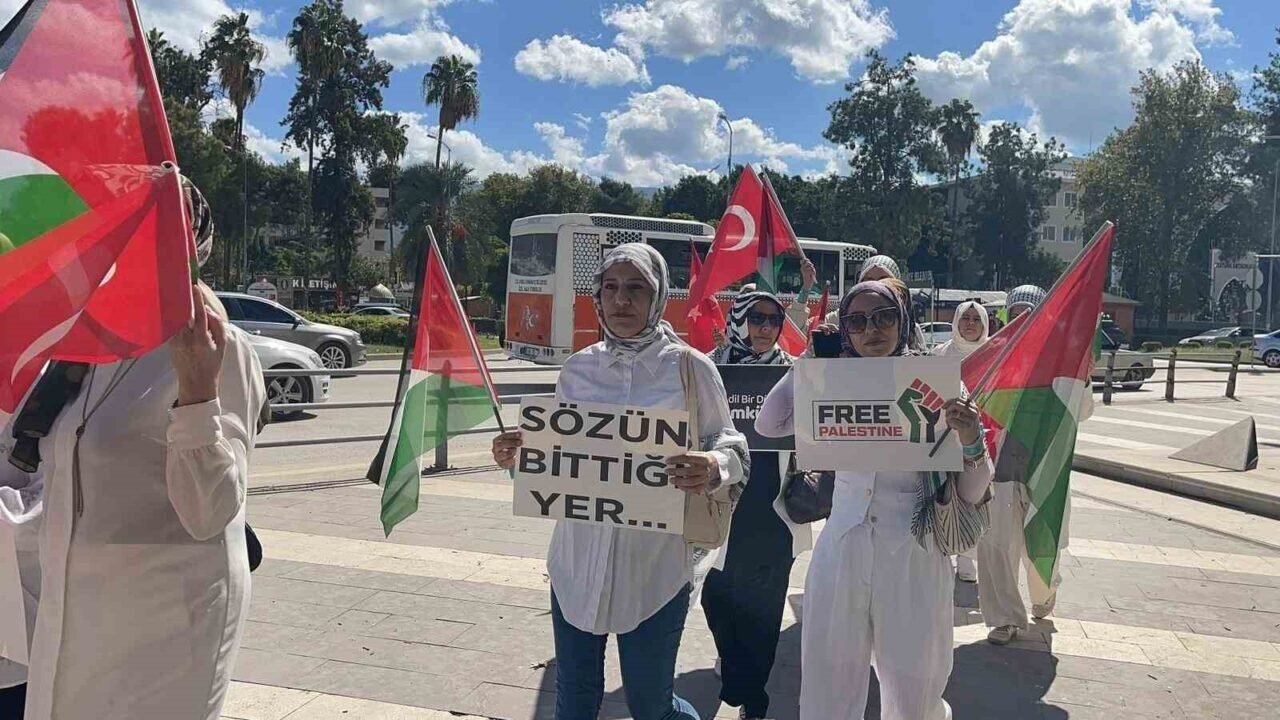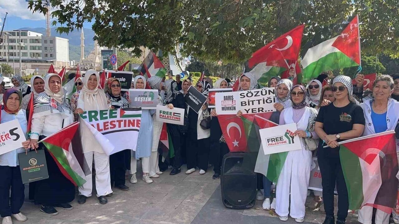 Devlet Bahçeli Meydanı’nda bir araya gelen kadınlar, ellerinde “Katil İsrail” ve “Özgür Filistin” yazılı döviz ve pankartlarla Gazze halkına destek verdi. Etkinlikte Gazze’de yaşanan insanlık dramına dikkat çeken AK Parti Kadın Kolları Başkan Yardımcısı Meriç Şen, “Türkiye’den tüm dünyaya tek bir şey söylüyoruz: Barış kadınla mümkündür. Duvarlara kanla yazılmış isimler bir annenin, bir babanın gizli hayali. Bir çocuğun hiç göremeyeceği baharı, bir çocuğun hiç yaşayamayacağı çocukluğu. İşte bu acının adı Gazze. Bugün kadınlar olarak Gazze’nin sessiz çığlığına ses olmak için, el ele verdiğimizi tüm dünyaya göstermek adına meydanlardayız. Bugün 81 ilde kurduğumuz bu zincir, Gazze’de evlatlarını kaybeden anne, babaların zinciridir. Öksüz, yetim bırakılan çocukların zinciridir. Ve insanlığını kaybetmeyen herkesin zinciridir. Barışçıl bir şekilde yola çıkan ve uluslararası sularda haydut İsrail’in hukuksuz müdahalesine uğrayan Küresel Sumud Filosu’nu dünya öylece seyretti. Hamdolsun, Türkiye, Cumhurbaşkanımız Sayın Recep Tayyip Erdoğan’ın kararlılığıyla bu adaletsizlik karşısında da sessiz kalmadı. Sadece kendi ülkesinin vatandaşlarını değil, 13 ülkeden 101 vicdan sahibi gönüllünün de ülkelerine güvenle dönmelerini sağladı. Bizler de ablukayı delmek ve insanlık onurunu korumak için mücadele eden kahramanların ülkemize dönüşlerinde oradaydık” diye konuştu.