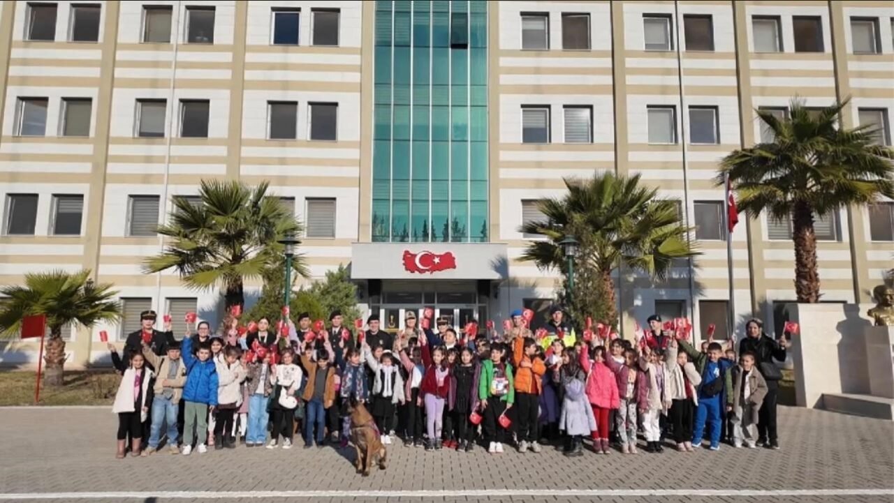 Osmaniye Çamlıkevler İlkokulu öğrencileri ve öğretmenleri, Osmaniye Jandarma Komutanlığının misafiri oldu. Minik ziyaretçilere, İl Jandarma Komutanlığı emrinde görevli tam donanımlı zırhlı araçları gezip, köpek timleri tarafından yapılan çeşitli gösterileri büyük ilgiyle izlediler. Jandarma birlik içerisinde bulunan araçların da tanıtıldığı etkinlikte yer alan minikler, fidan dikimi yaptı, askerlerle birlikte fotoğraf çektirdikten sonra verilen ikramların ardından jandarmadan ayrıldılar.