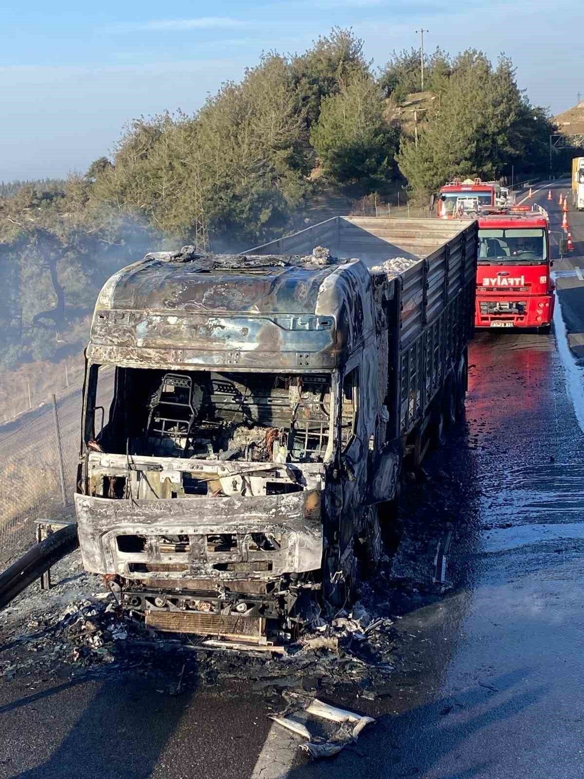 Yangın, Tarsus-Adana-Gaziantep (TAG) Otoyolu’nun Düziçi mevkisinde meydana geldi. Edinilen bilgiye göre, İsmet K. yönetimindeki 02 ABM 659 plakalı tırın kupasında henüz bilinmeyen bir nedenle yangın çıktı. Alevleri fark eden sürücü, aracı güvenlik şeridine çekerek durumu itfaiye ekiplerine bildirdi. İhbar üzerine kısa sürede olay yerine gelen itfaiye ekipleri, tırın kupasını saran yangına müdahale ederek kontrol altına aldı. Ekiplerin yoğun çabasıyla söndürülen yangında herhangi bir yaralanma meydana gelmezken, tırın kupası tamamen yanarak kullanılamaz hale geldi.