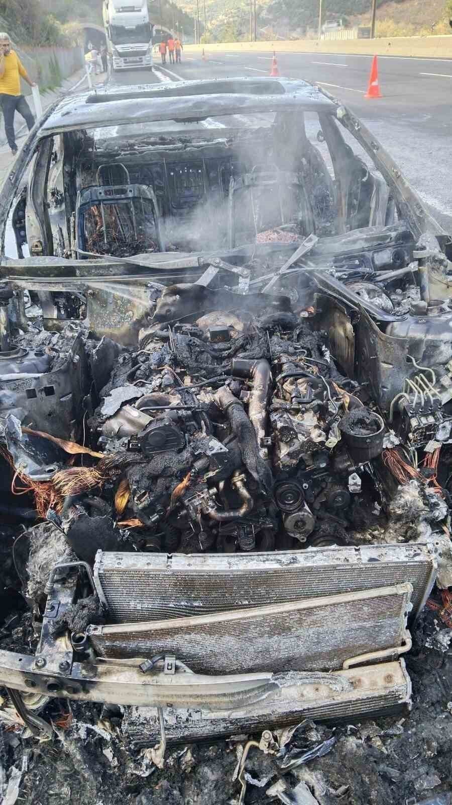 Yangında yaralanan olmazken, otomobil küle döndü. Yangının çıkış nedeninin belirlenmesi için inceleme başlatıldı.