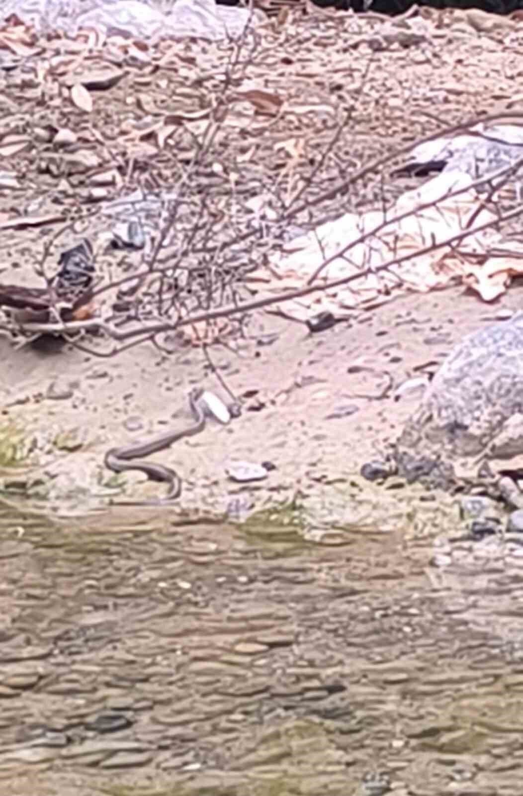 Osmaniye’nin Karaçay deresinde yılanın balık avı cep telefonu kamerasına yansıdı.