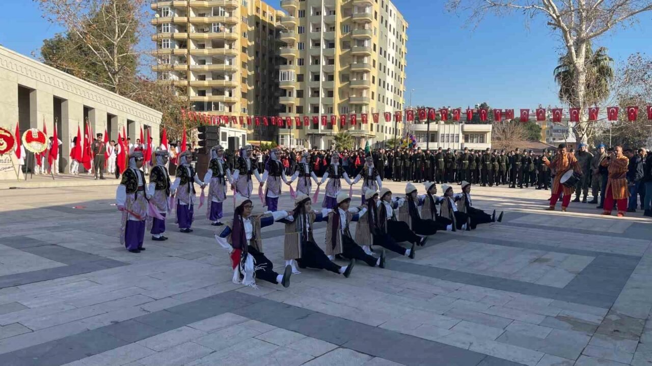Programın devamında şiirler okundu, ardından 7 Ocak Halkoyunları Topluluğu gösterilerini sergiledi. Osmaniye Belediyesi Mehteran Birliğinin seslendirdiği marşlara protokol üyeleri, öğrenciler ve vatandaşlar ellerindeki Türk bayraklarını sallayarak eşlik etti. Jandarma Genel Komutanlığı Merasim Bölük Komutanlığı ekipleri tüfekli gösterilerini sundular. Tören, Jandarma Özel Asayiş Komutanlığı timinin helikopterle gerçekleştirdiği “üzüm salkımı” gösterisiyle sona erdi.
