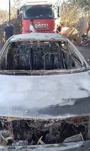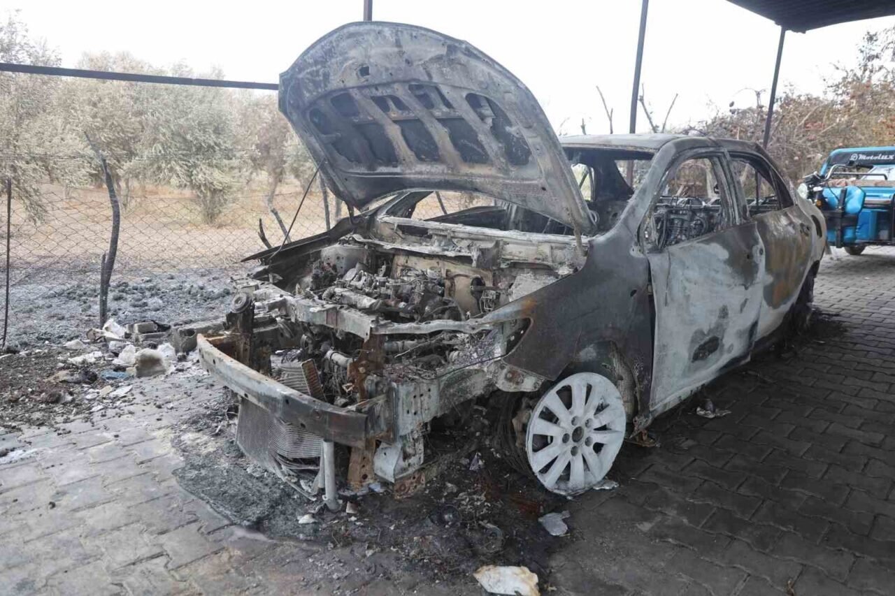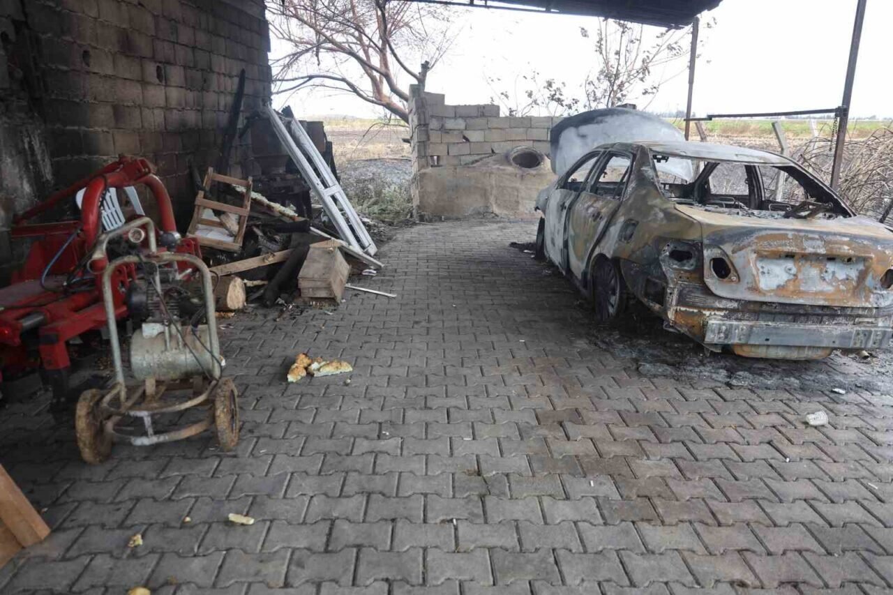 Hatay’ın Reyhanlı ilçesinde otluk alanda çıkıp samanlığa sıçrayan yangında, depremzede ailenin otomobilleri ve tarım aletleri kullanılamaz hale geldi. Depremde evleri yıkılıp konteyner da yaşamlarını sürdüren aile, yangından dolayı bir kez daha felaketi yaşadıklarını söylediler.