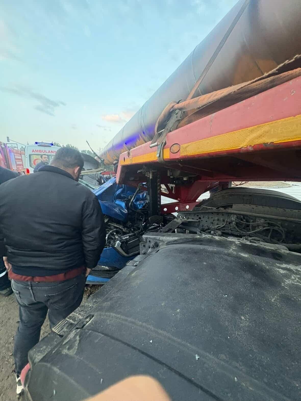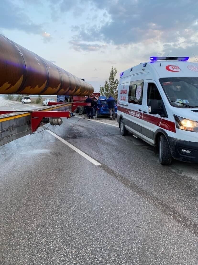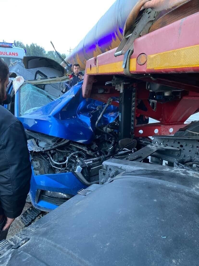 Otomobil, demir boru yüklü tırla çarpıştı: 2 yaralı