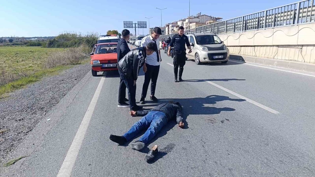 Antalya’da motosiklet ile otomobilin çarpışması sonucu meydana gelen trafik kazasında çarpışmanın etkisiyle yaklaşık 50 metre sürüklenen motosiklet sürücüsü yaralandı.