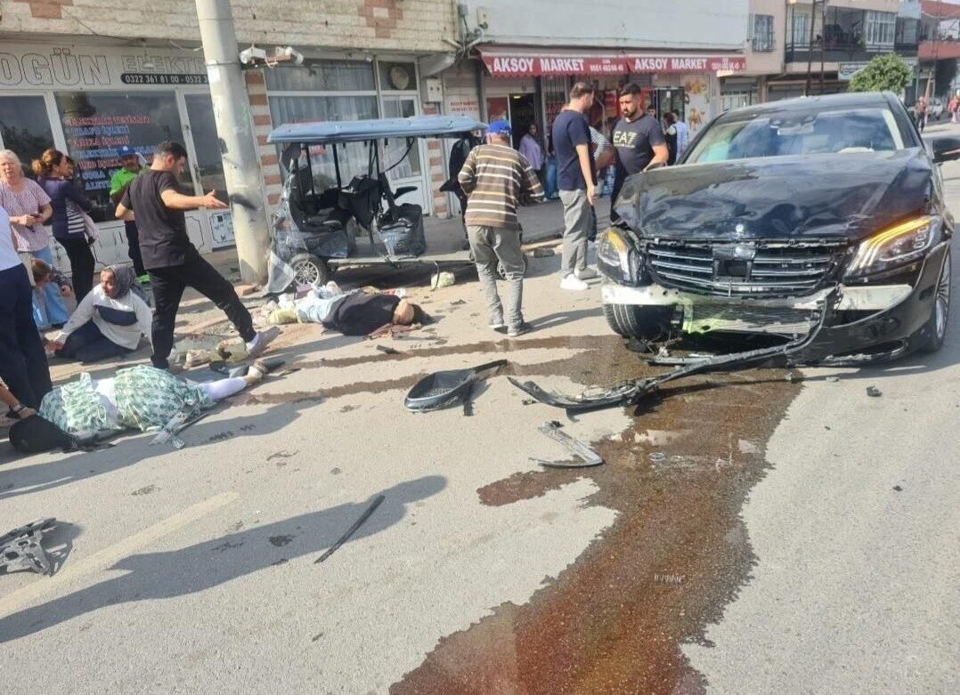 Kaza, merkez Seyhan ilçesi Şehit Kemal Yüzgeç Bulvarı’nda meydana geldi. İddiaya göre, F.S. idaresindeki 01 TS 407 plakalı Mercedes marka otomobil ile N.D. yönetimindeki 01 BDS 907 plakalı elektrikli golf aracı çarpıştı. Kazada golf aracında bulunan sürücü ile birlikte 3 kişi yaralandı. Yaralılar, ihbar üzerine bölgeye sevk edilen ambulansla hastaneye kaldırıldı. Hastanede tedavi altına alınan yaralılardan sürücünün dışındaki 2 kişinin durumunun ağır olduğu öğrenildi.