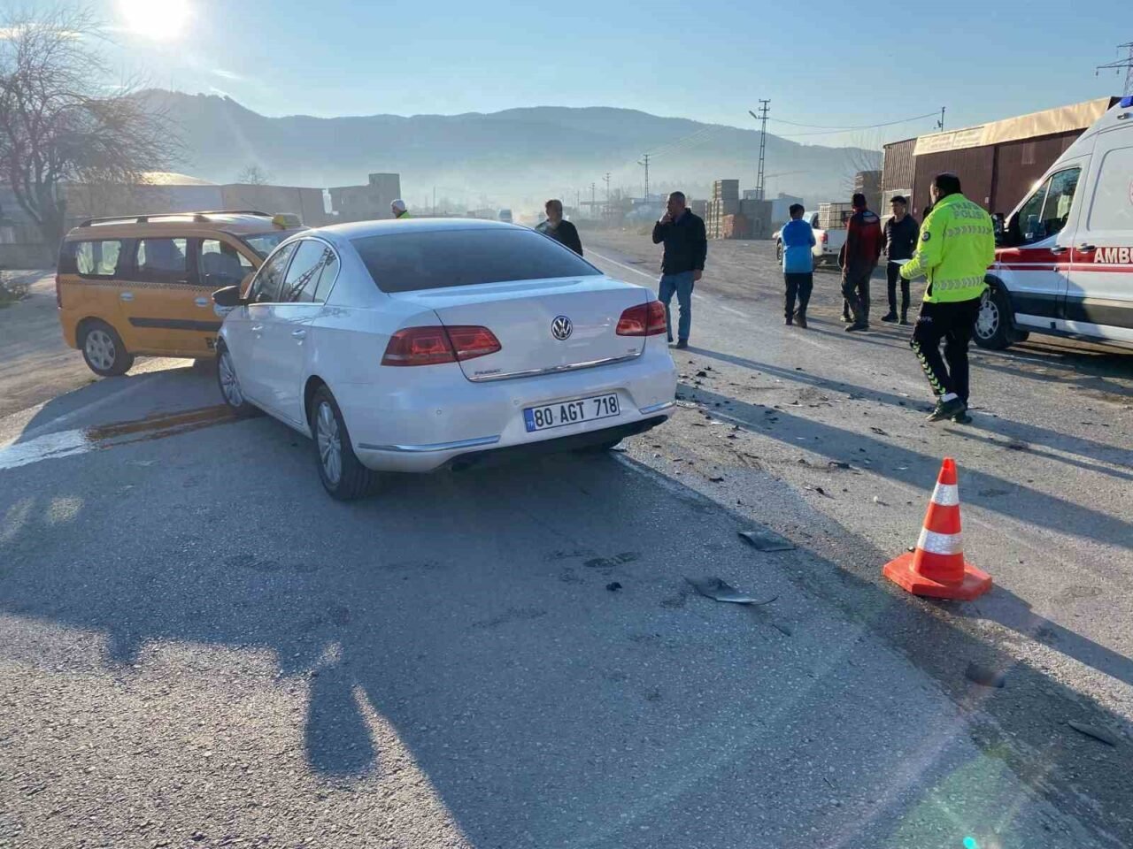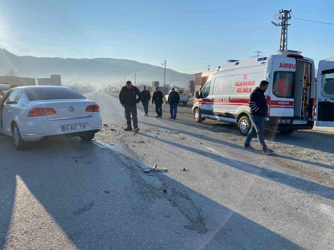 Kaza, Düziçi ilçesi Muhsin Yazıcıoğlu Bulvarı üzerinde meydana geldi. Mustafa Ş. idaresindeki 80 T 5005 plakalı ticari taksi ile Ali İ. idaresindeki 80 AGT 718 plakalı Volkswagen marka otomobil çarpıştı. Kazada ticari takside yolcu olan Ayvaz B. ve otomobilde yolcu olarak bulunan Adem İ. yaralandı. İhbar üzerine olay yerine sağlık ve polis ekipleri sevk edildi. Yaralılar, sağlık ekiplerinin ilk müdahalesinin ardından hastaneye kaldırıldı.