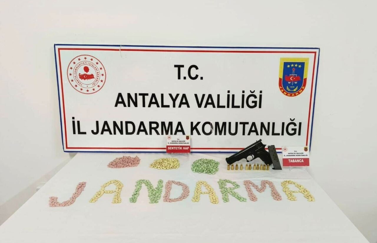 Gazipaşa İlçe Jandarma Komutanlığına bağlı Güney Jandarma Karakol Komutanlığı ekipleri, Antalya’nın doğu giriş kapısı olarak gösterilen Güney Jandarma Yol Kontrol Noktası’nda denetimlerine devam ediyor. Jandarma ekiplerinin durdurduğu otomobilde şüphe üzerine yapılan aramada otomobilin koltuğuna gizlenmiş bin 600 adet ecstacy hap ile bir adet tabanca ve 11 adet fişek ele geçirildi. Jandarma ekipleri tarafından olaya ilişkin gözaltına alınan 1 kişi, işlemleri yapılmak üzere karakola götürüldü. İşlemlerinin ardından Gazipaşa Devlet Hastanesinde sağlık kontrolünden geçirilerek Gazipaşa Adliyesine sevk edilen şahıs, tutuklanarak cezaevine gönderildi.