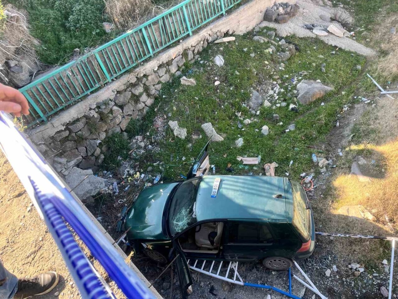 Osmaniye’de yaklaşık 3 metre yükseklikteki köprüden dereye uçan otomobildeki 2 kişi yaralandı.