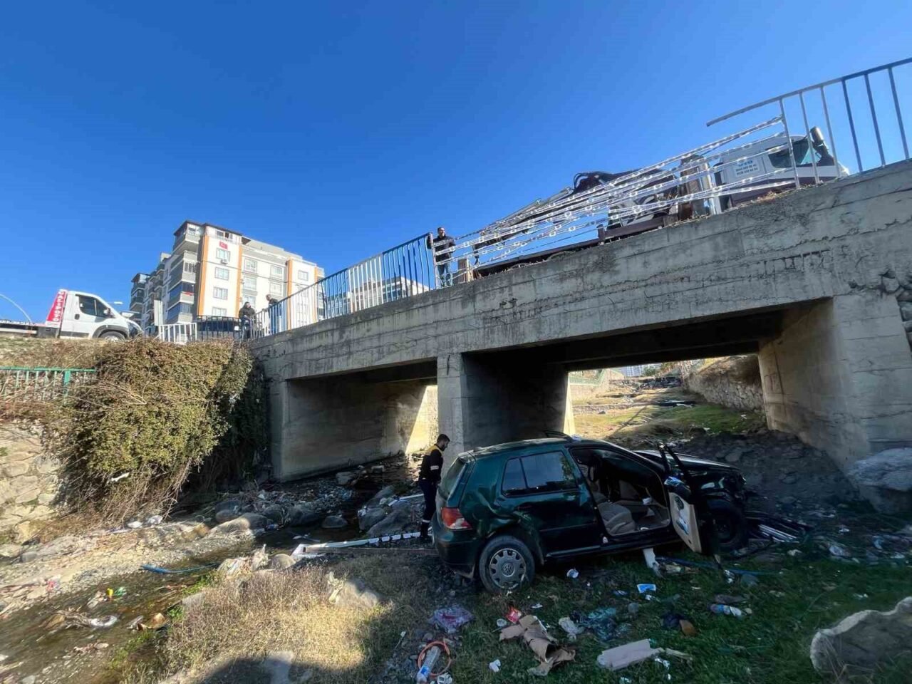 Osmaniye’de yaklaşık 3 metre yükseklikteki köprüden dereye uçan otomobildeki 2 kişi yaralandı. Kaza, Düziçi ilçesi Kurtuluş Mahallesi Çocuk köyü civarında meydana geldi. Sürücüsü öğrenilemeyen 80 AGU 689 plakalı Volkswagen Golf marka otomobil, sürücünün direksiyon hakimiyetini kaybetmesi sonucu köprü korkuluklarını kırarak dereye düştü. Çevredeki vatandaşların ihbarı üzerine olay yerine sağlık ekipleri sevk edildi. 2 yaralı, ilk […]