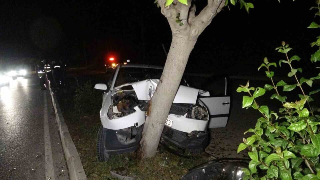 Otomobil refüjdeki ağaca çarptı, sürücü yaralandı