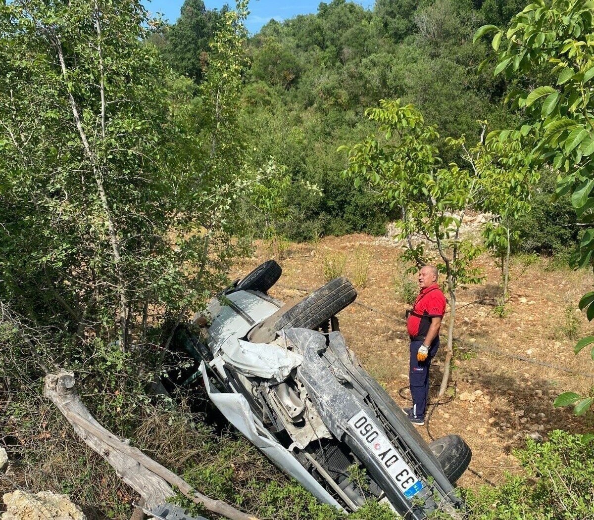 Mersin’in Erdemli ilçesinde sürücüsünün kontrolünden çıkan otomobil, yaklaşık 20 metre yükseklikten kayalık alana yuvarlandı. Kazada araçta bulunan 5 kişi yaralandı.