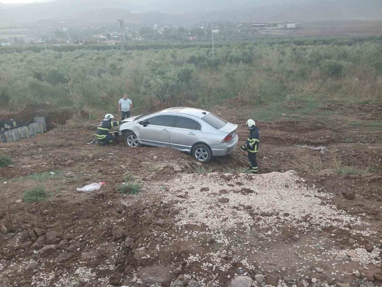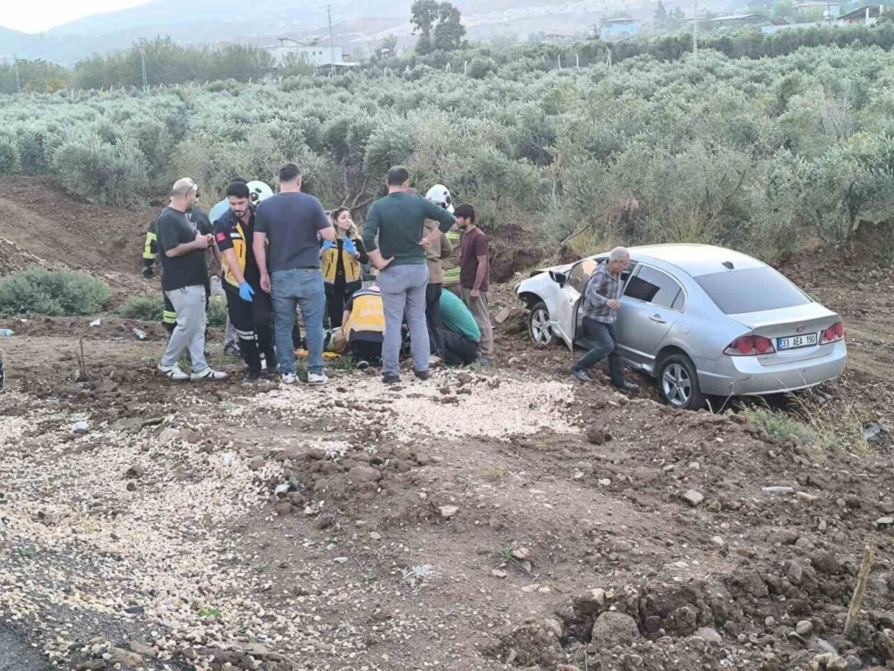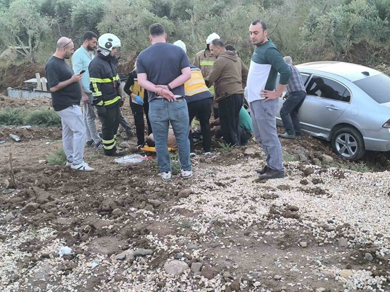 Otomobil zeytin bahçesine uçtu: 1 yaralı
