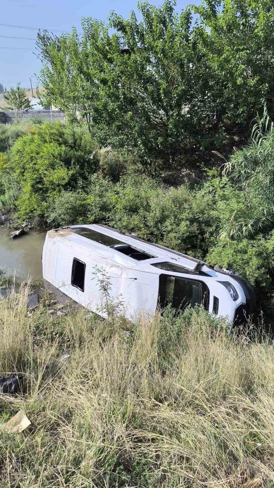 Hatay’ın Dörtyol ilçesinde otomobille çarpışan minibüsün dereye uçma anı kameraya yansıdı. Çarpışma sonrası dereye uçan minibüsteki 4 kişi yaralandı.