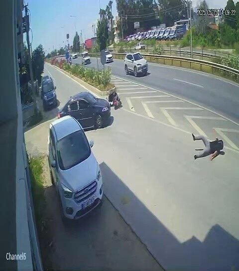 Kaza; Antalya-Manavgat D-400 Karayoluna çıkan tali yolda meydana geldi. Seyir halindeki İ.Ç.’nin kullandığı 63 AJR 773 plakalı motosiklet, tali yoldan önüne çıkan V.N.’nin kullandığı 07 AUJ 734 plakalı otomobile çarptı. Güvenlik kamerasına yansıyan görüntülerde, çarpmanın etkisiyle motosiklet sürücüsünün yaklaşık 15 metre sürüklendiği görüldü. Yaralanan motosiklet sürücüsü, olay yerine gelen 112 sağlık ekiplerinin ilk müdahalesinin ardından ambulansla hastaneye kaldırıldı.