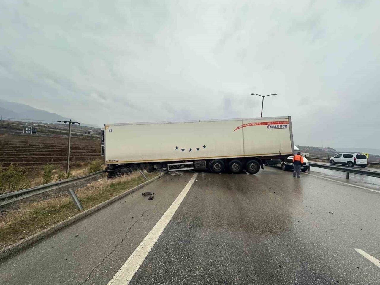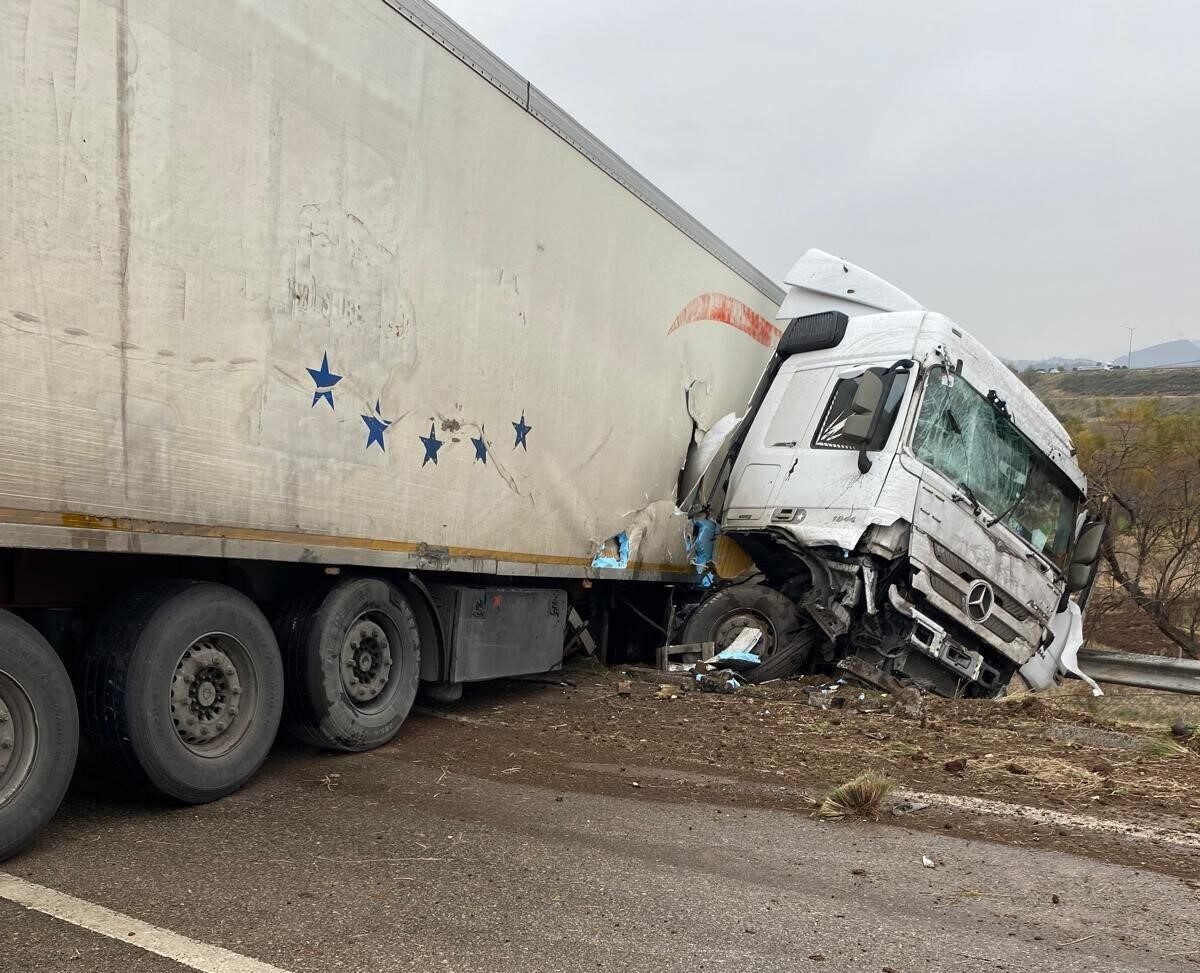 Otoyolda kontrolden çıkan tır kaza yaptı: 1 kişi yaralandı