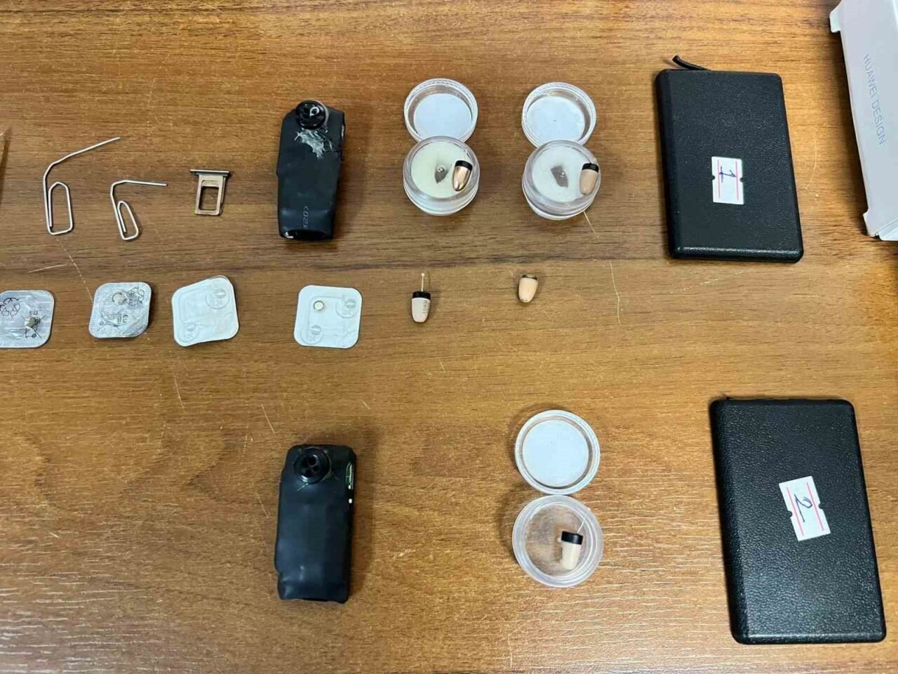HATAY’DA EHLİYET SINAVINDA KOPYA ÇEKTİKLERİ TESPİT EDİLEN ŞAHISLARIN ÜST VE ARAÇ ARAMASINDA ÖZEL BÖLMELİ İÇ ÇAMAŞIRI VE AYAKKABI SİSTEMİ BAŞTA OLMAK ÜZERE ÇEŞİTLİ MATERYALLER ELE GEÇİRİLDİ.