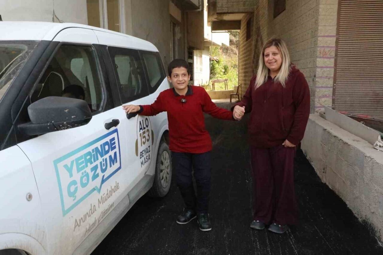 Hatay Büyükşehir Belediyesi, ihbar üzerine özel gereksinimli birey Sebahattin Delioğlu’nun evinin yolunu asfaltlayarak çocuğun sokakta rahatça yürüyebilmesini sağladı.