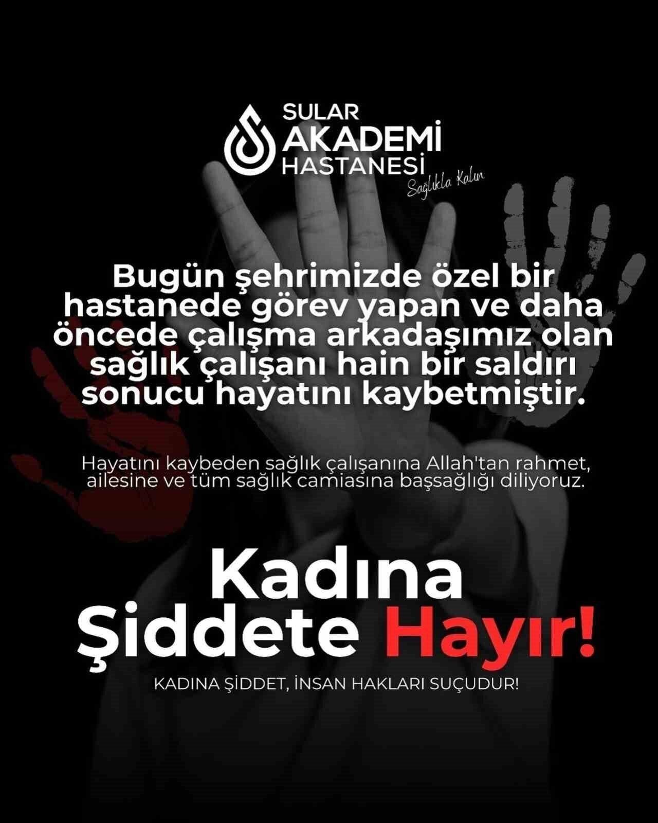 Özel Megapoint Hastanesi, sağlık çalışanı cinayetiyle ilgili yapılan yazılı açıklamada, “Şehrimizde hizmet veren özel bir sağlık kuruluşunda görev yapan ve daha öncede çalışma arkadaşımız olan sağlık çalışanının, uğradığı silahlı saldırı sonucu hayatını kaybetmesi bizi derinden üzmüştür. Hayatını kaybeden sağlık çalışanımıza Allah’tan rahmet, kederli ailesine, yakınlarına ve tüm sağlık camiasına başsağlığı ve sabırlar diliyoruz. Bilinmelidir ki kadına yönelik her türlü şiddet anneye yöneliktir. Mesleği gereği bizim için ayrı bir öneme sahip olan sağlık çalışanının bu şekilde acımasızca ve canice saldırıya maruz kalarak hayatını kaybetmesi biz sağlık camiasını derinden etkilemiş olup derin bir yasa boğmuştur. İşi sadece insanlara sağlık alanında hizmet vermek olan sağlık çalışanının bu denli hayatını kaybetmesi bizleri derinden etkilemiştir. Bu olay, hem kadına yönelik şiddet, hem de sağlık camiamıza yönelik bir tehdit ve toplum vicdanını yaralayan korkunç bir eylemdir. Sağlık camiamızın başı sağ olsun” denildi.