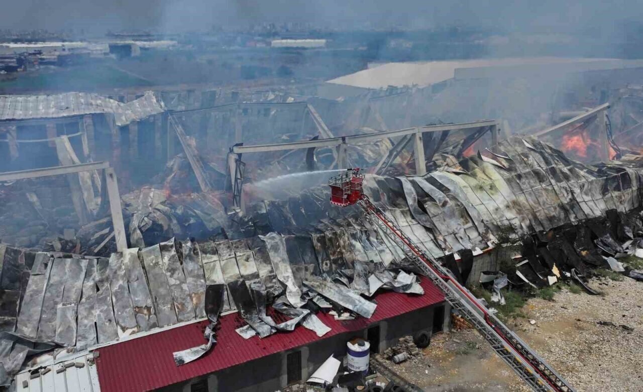 Yangının meydana geldiği depodaki son durum ise dron ile havadan görüntülendi.