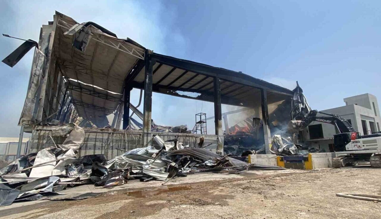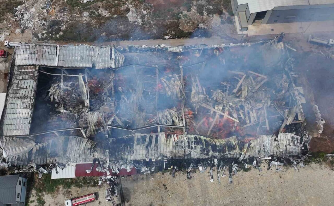 Yangının meydana geldiği depodaki son durum ise dron ile havadan görüntülendi.