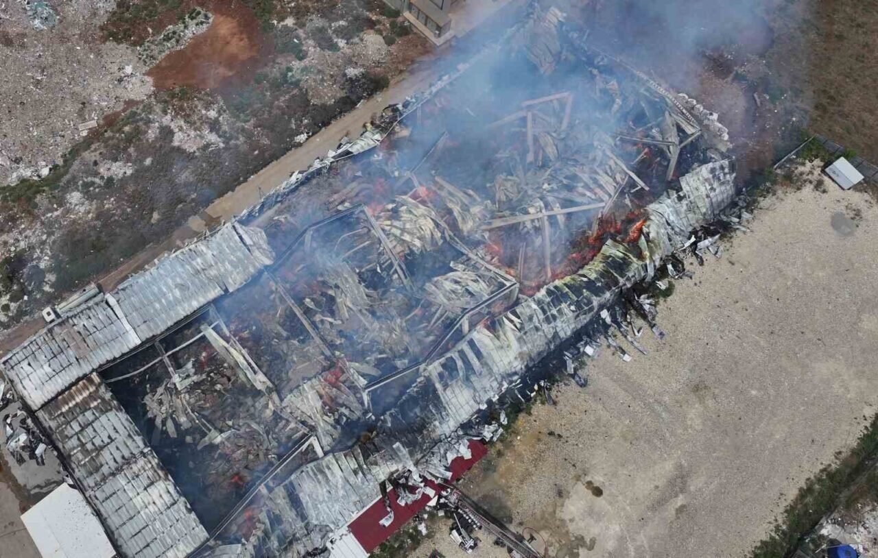 Mersin’de pamuk deposunda çıkan yangın kontrol altına alındı son durum dron ile havadan görüntülendi.