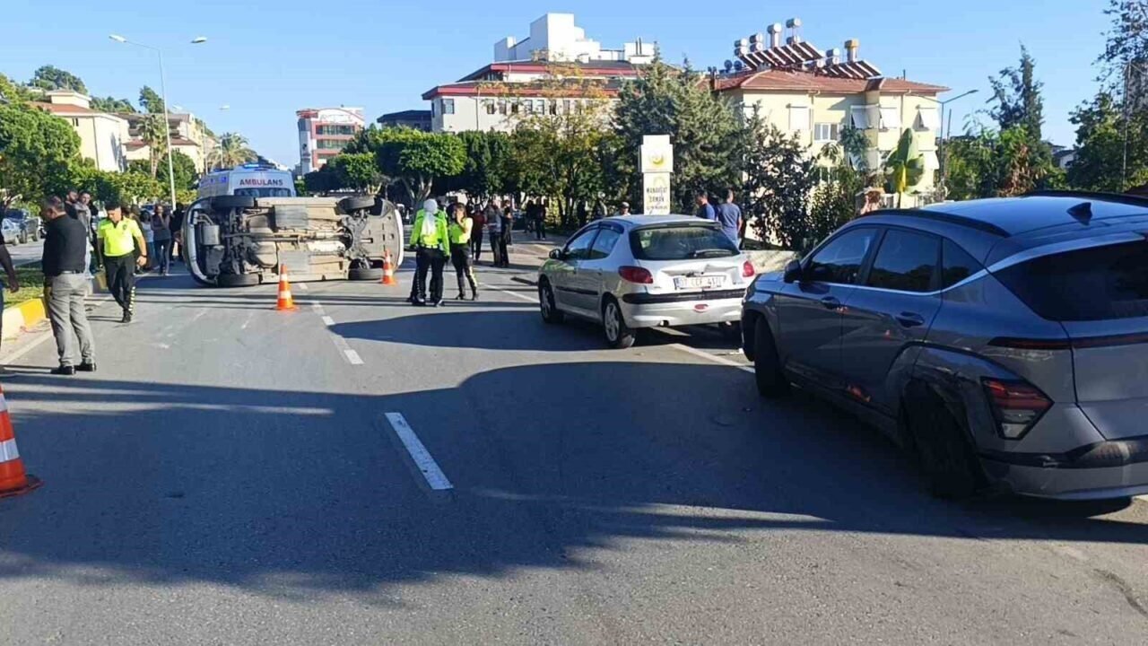 Antalya’nın Manavgat ilçesinde meydana gelen kazada yol kenarında park halindeki araçlara çarpıp devrilen otomobilin sürücüsü yaralandı.