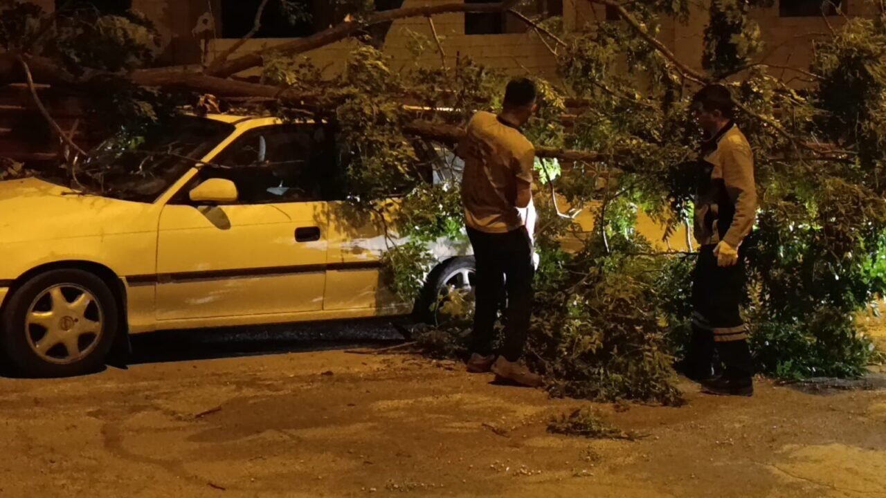 Kahramanmaraş’ın Onikişubat ilçesinde etkili olan şiddetli fırtına, günlük yaşamı olumsuz etkiledi. Fatih Mahallesi’nde fırtına nedeniyle gövdesinden kırılan ağaç, park halindeki otomobilin üzerine devrildi.