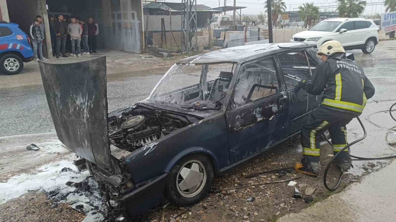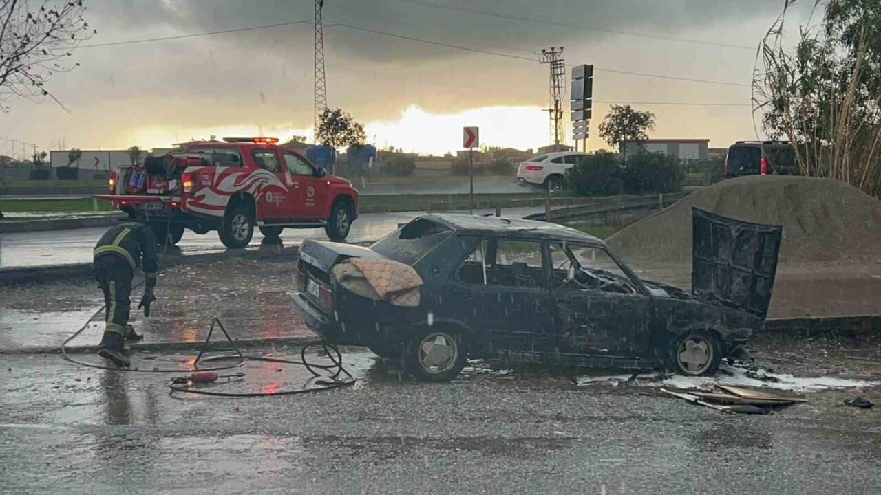 Olay, Alanya-Manavgat D-400 Karayolu Aşağı Işıklar kavşağında yaşandı. Edinilen bilgiye göre yol kenarında bulunan iş yerinin önünde Halil İbrahim Arslaner’e ait park halindeki 07 GV 422 plakalı Tofaş Şahin marka otomobil, şiddetli yağmura rağmen yanmaya başladı. 112 Acil Çağrı Merkezine gelen ihbar üzerine olay yerine Antalya Büyükşehir Belediyesi İtfaiyesi Manavgat Birimi ve Manavgat İlçe Jandarma Komutanlığı Merkez Karakoluna bağlı ekipler sevk edildi.