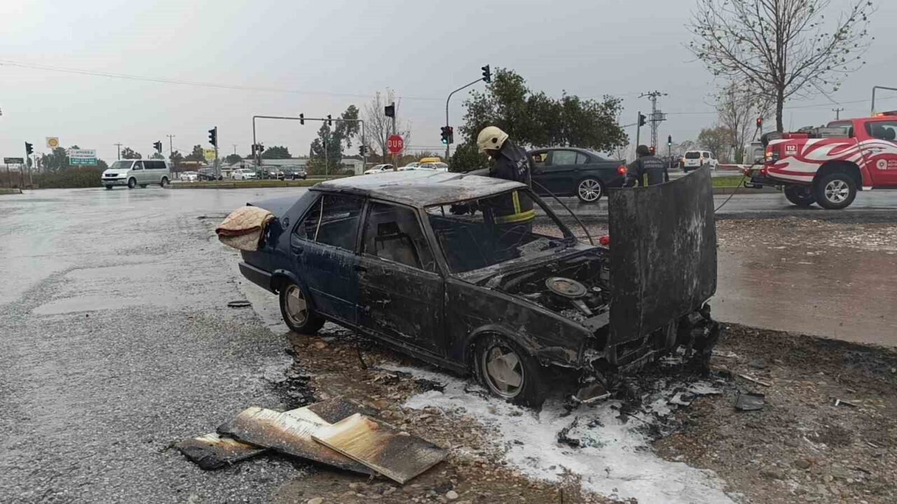 İtfaiye ekiplerinin müdahalesi sonucunda söndürülen otomobil, tamamen yanarak kullanılamaz hale geldi.