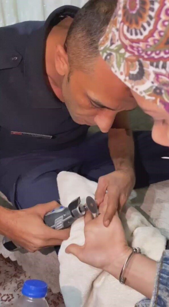 Hatay’ın Kırıkhan ilçesinde parmağına sıkışan yüzük, itfaiye ekiplerinin müdahalesiyle çıkartıldı.