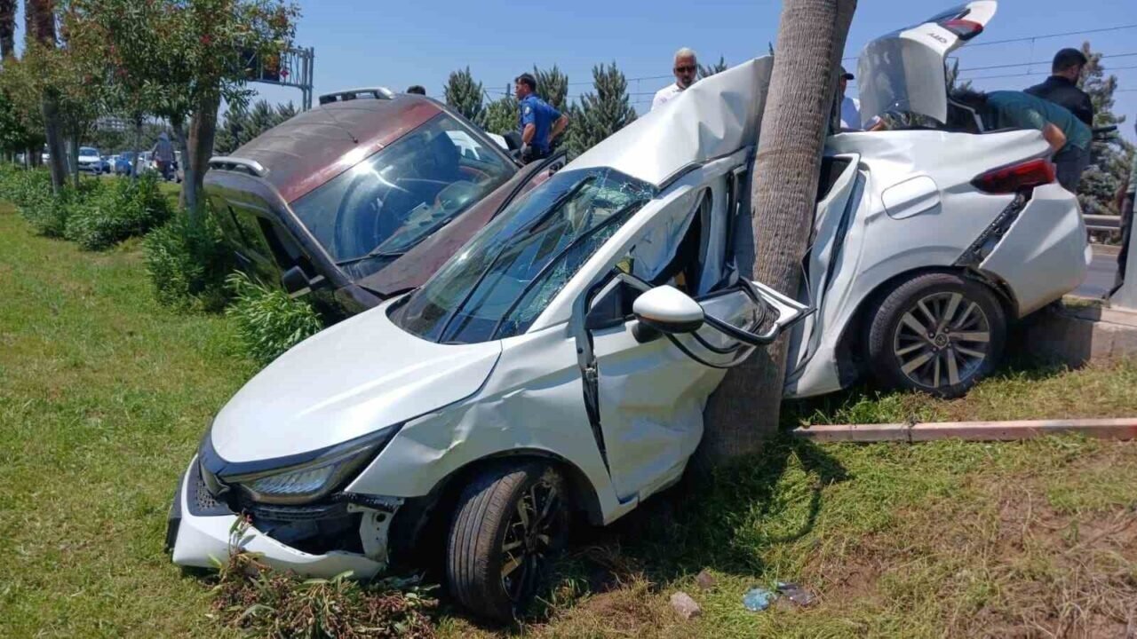 Öte yandan, kaza anı arkadan gelen bir başka bir aracın araç içi kamerasına yansıdı. Görüntülerde süratli bir şekilde makas tarak ilerleyen aracın seyir halindeki iki aracın arasından geçmek isterken polis memurlarının bulunduğu araca arkadan çarptığı, ardından da önüne alarak refüjde bulunan palmiye ağacına çarparak sıkıştırdığı görüldü.