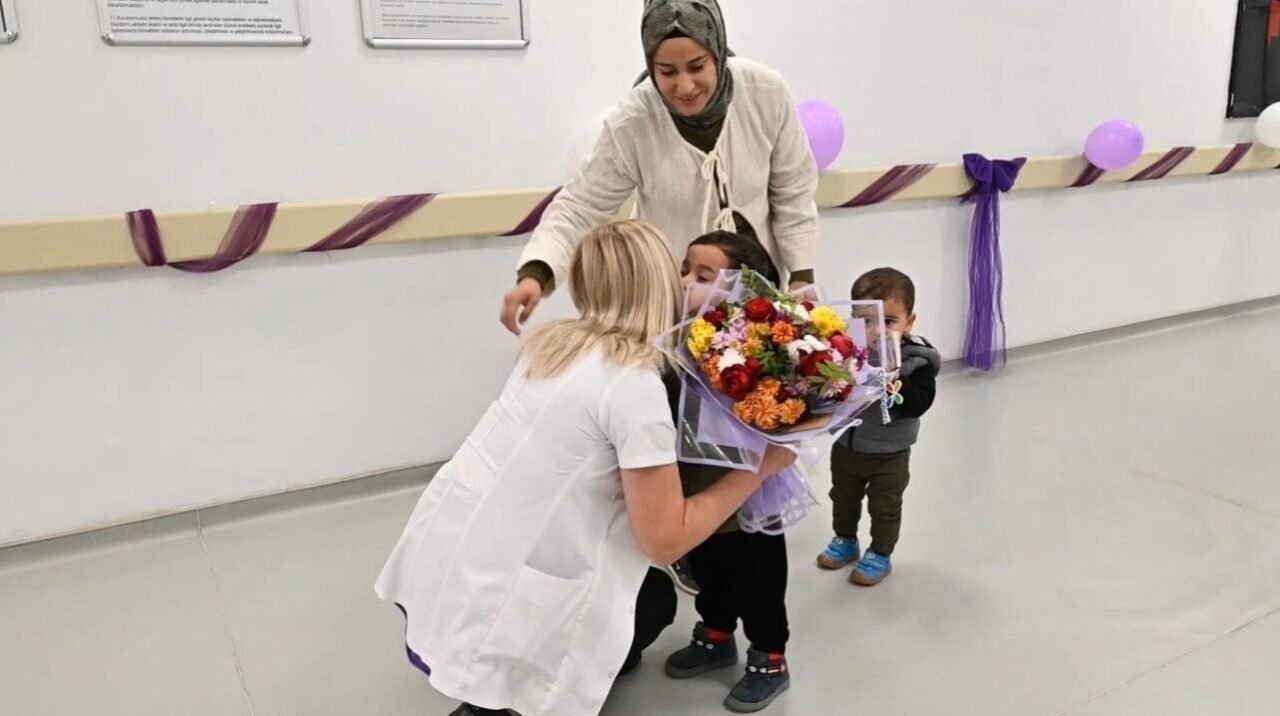 Osmaniye’de 17 Kasım Dünya Prematüre Gününde 28 haftalık ve 1500 gram olarak dünyaya gelen Oğuzhan Aydın’ın (3,5) ailesi, oğullarının hayata tutunmasında büyük emeği bulunan Neonatoloji Uzmanı Dr. Özgül Tunç Akbaş’ı ziyaret ederek çiçek takdim etti.