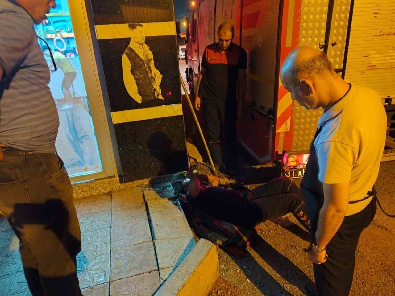 Hatay’da bir iş yerinin reklam panosuna sıkışan kedi, itfaiye ekiplerinin titiz çalışmasıyla kurtarıldı.