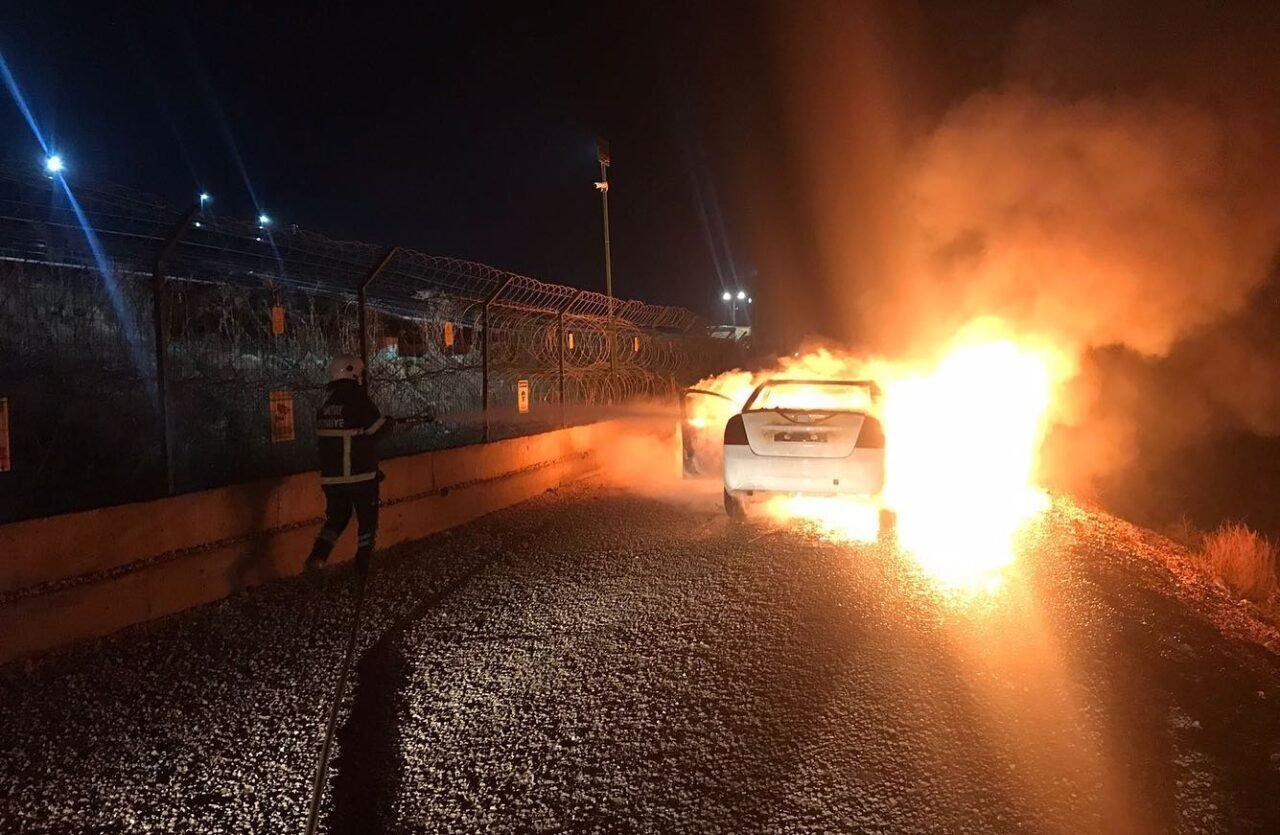 Reyhanlı’da çıkan yangında otomobilde maddi hasar oluştu