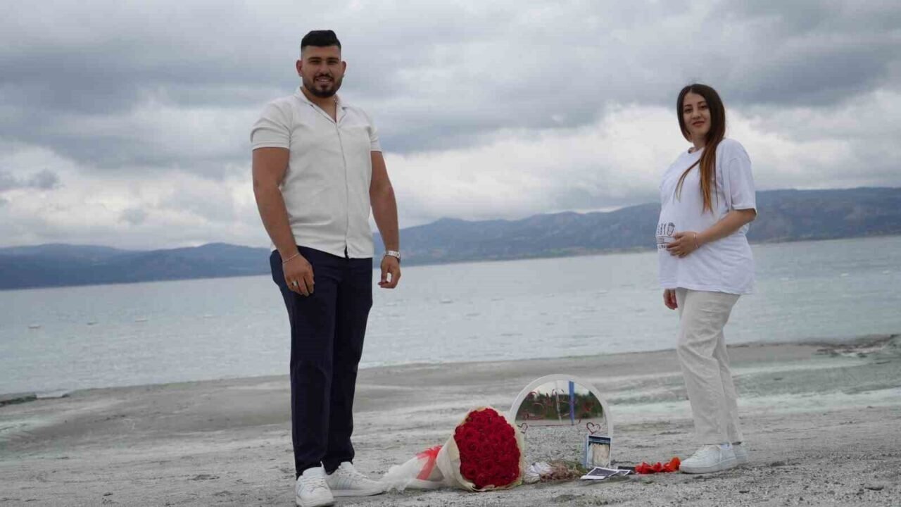 SALDA GÖLÜNDE FOTOĞRAF ÇEKİMİNE GELEN ÇİFT