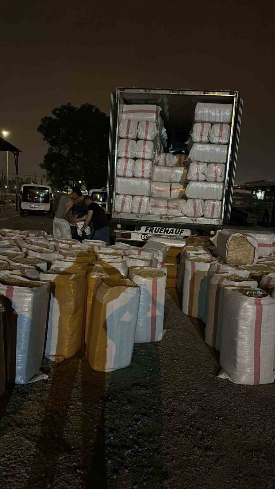 Adana İl Emniyet Müdürlüğü Kaçakçılık ve Organize Suçlarla Mücadele Şube Müdürlüğü ekipleri, Sarıçam ilçesinde saman yüklü bir tıra operasyon düzenledi.