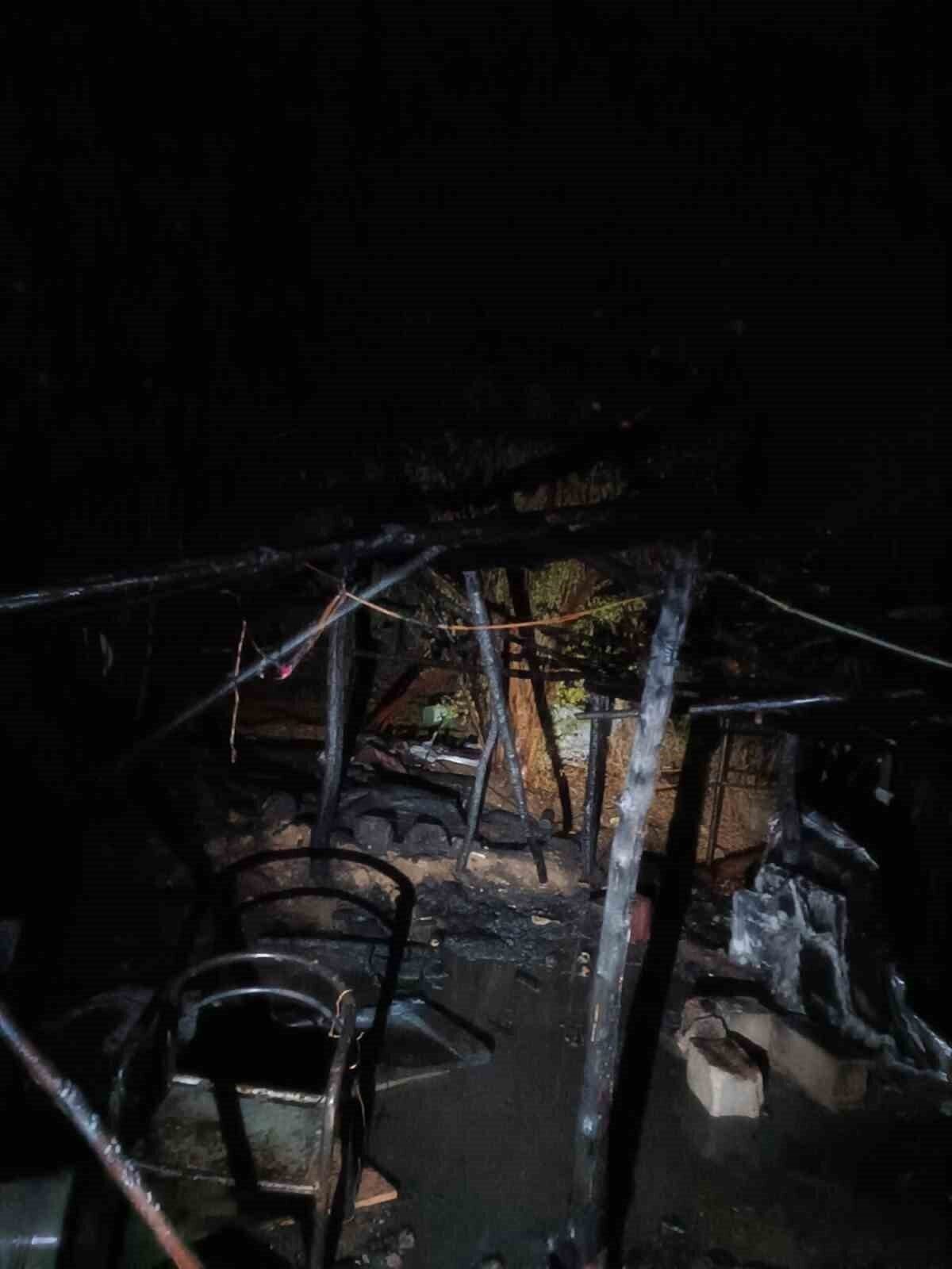 Hatay’ın Samandağ ilçesinde depo olarak kullanılan çadır, alevlere teslim olarak kullanılamaz hale geldi.