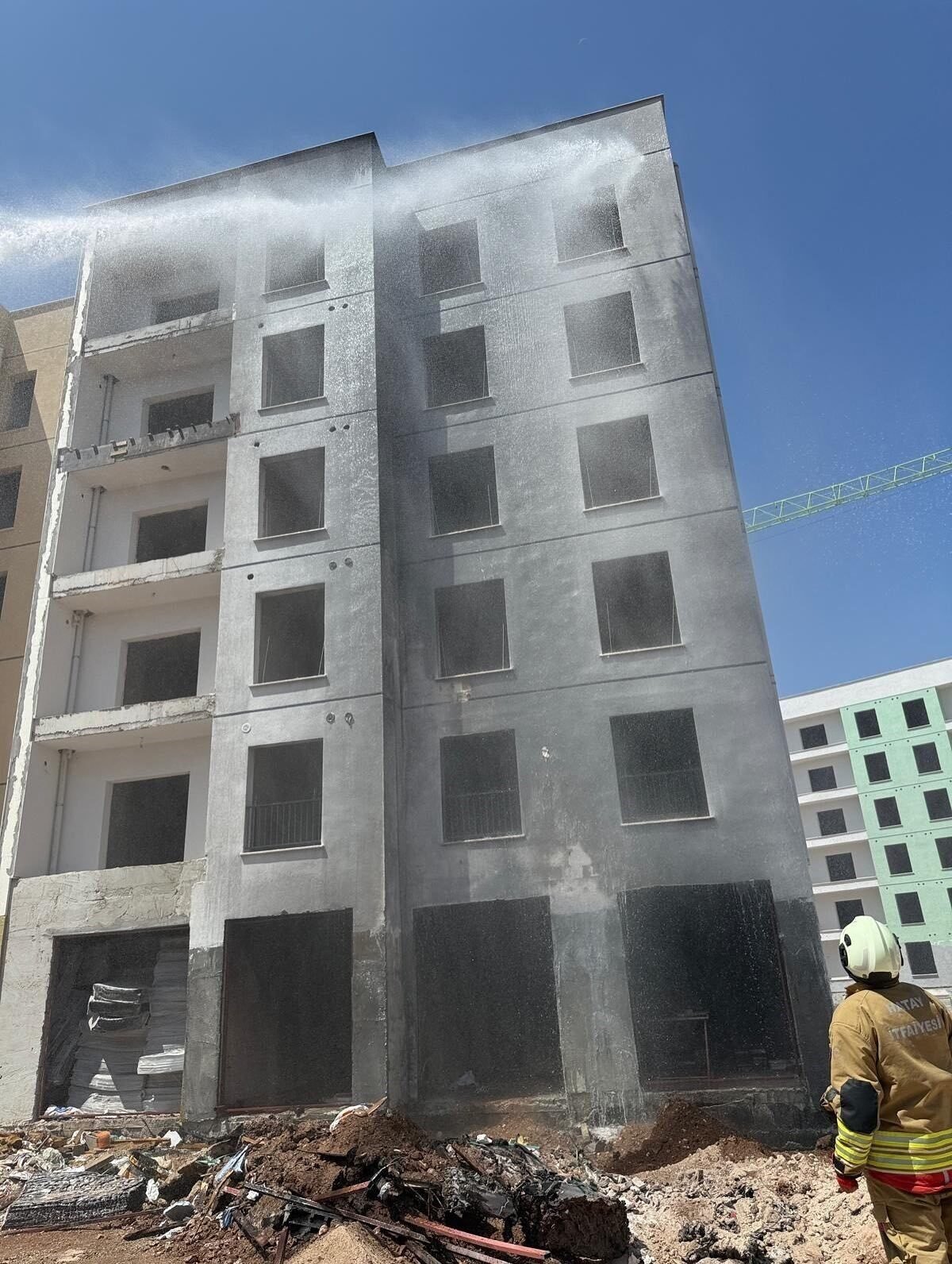 Hatay’ın Kırıkhan ilçesinde şantiye alanında başlayıp binaya sıçrayan yangını itfaiye ekiplerinin müdahalesiyle söndürüldü.