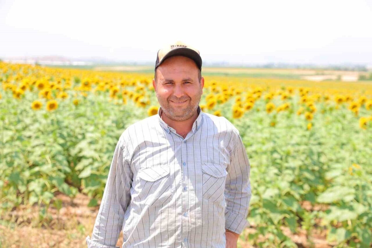 Üretici Yahya Yenen, “Bölgemiz Türkoğlu ilçesine bağlı Kadıoğlu çiftliği. Bölgemizde birçok ürün yetişiyor. Ayçiçeği, hububat, yağlık ve çerezlik ay çiçek üretimi de yapılıyor. Şu anda tam günebakan dediğimiz görüntü var. Görsel şölen oluşturuyor ve üretim son hızla devam ediyor” diye konuştu.
