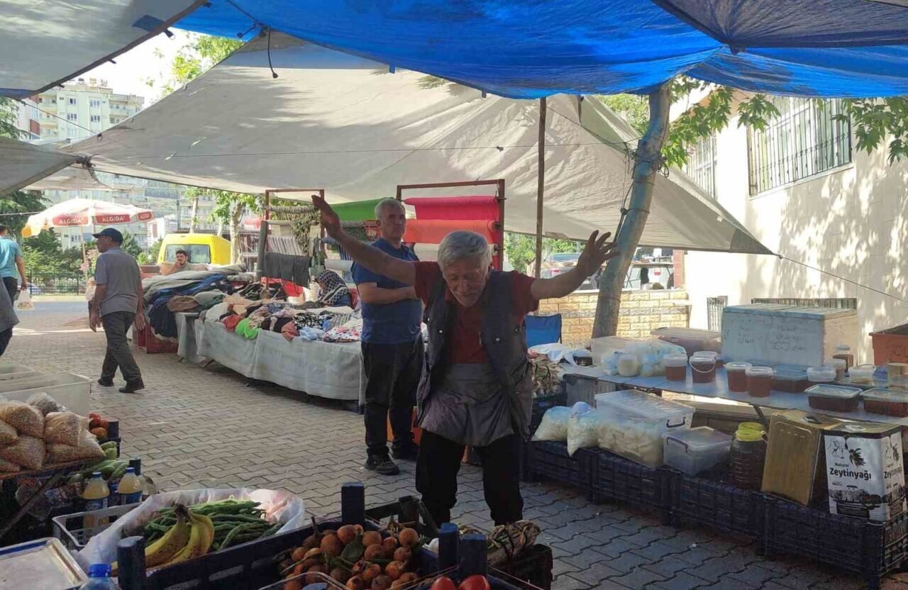 Sözlerine devam eden pazarcı, “Pazar da meyve ve sebzeyi en ucuz veren benim. Ben ne dersem herkes onu yapıyor. Mesela maaliyeti 100 lira olan malzemeye ben 60 lira diyorum ve birçoğu 60 liraya indiriyor. Oyun oynamazsam duramam, neşem yerine gelmez ben buranın neşesiyim’’ ifadelerini kullandı.