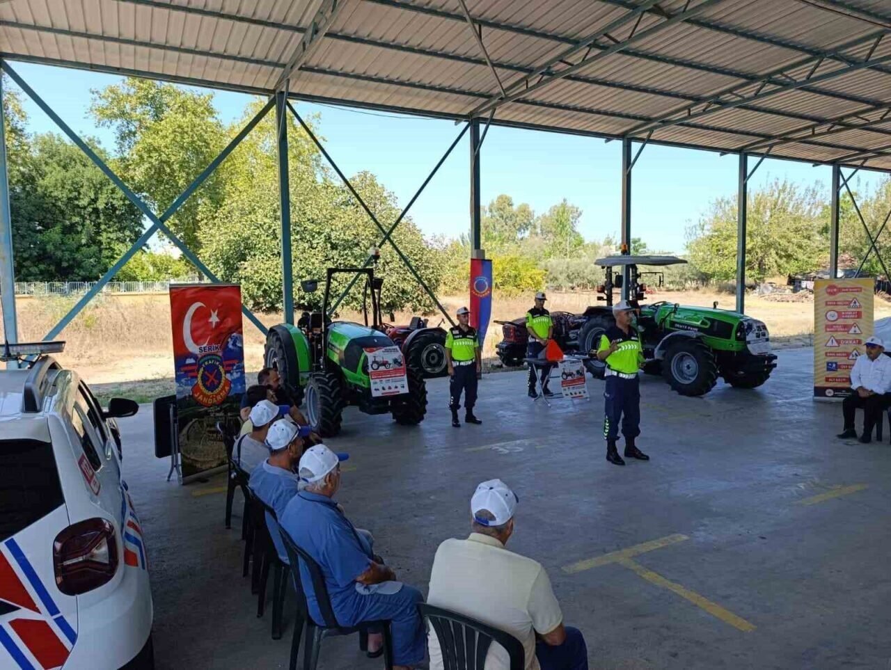 Antalya’nın Serik ilçesinde jandarma ekipleri tarafından traktör ve tarım araçları sürücülerine yönelik trafik eğitimi verildi.