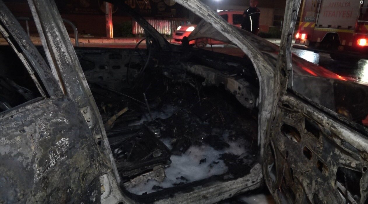 Antalya’nın Alanya ilçesinde seyir halindeyken alev alan otomobil kullanılamaz hale