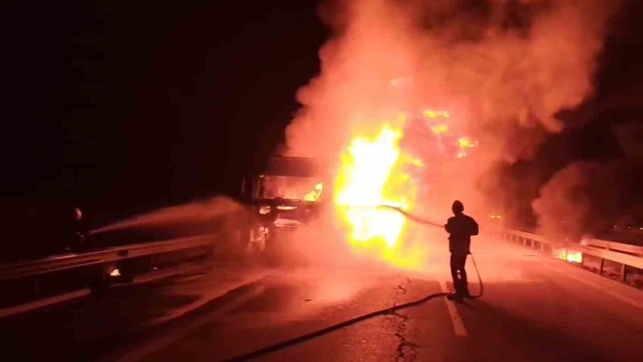 Seyir halindeki tır alevlere teslim oldu