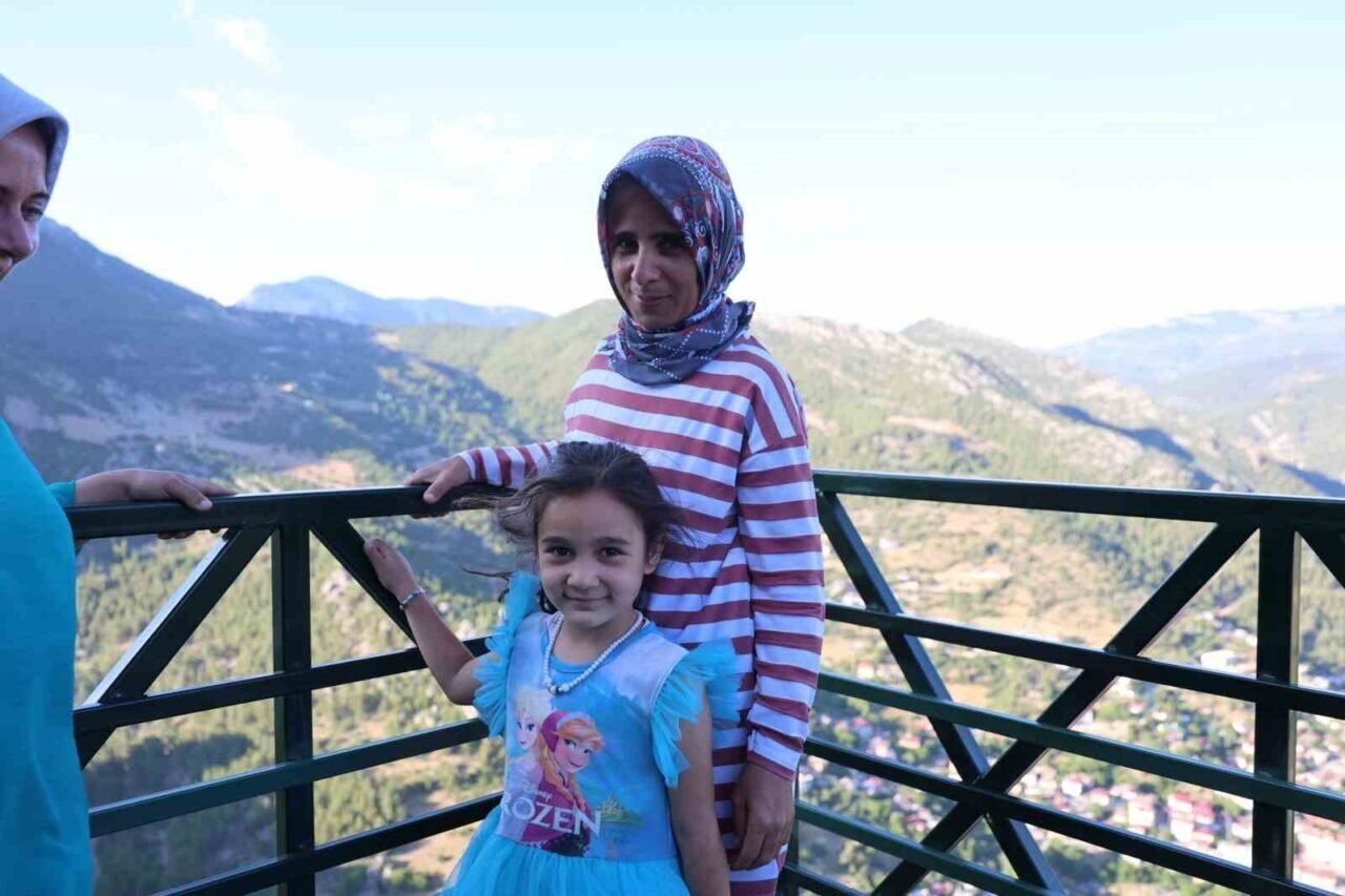 Cam terasta aileleri birlikte yürüyen çocuklarda hem cesaretlerini test etti hem de doğanın tadını çıkardı.