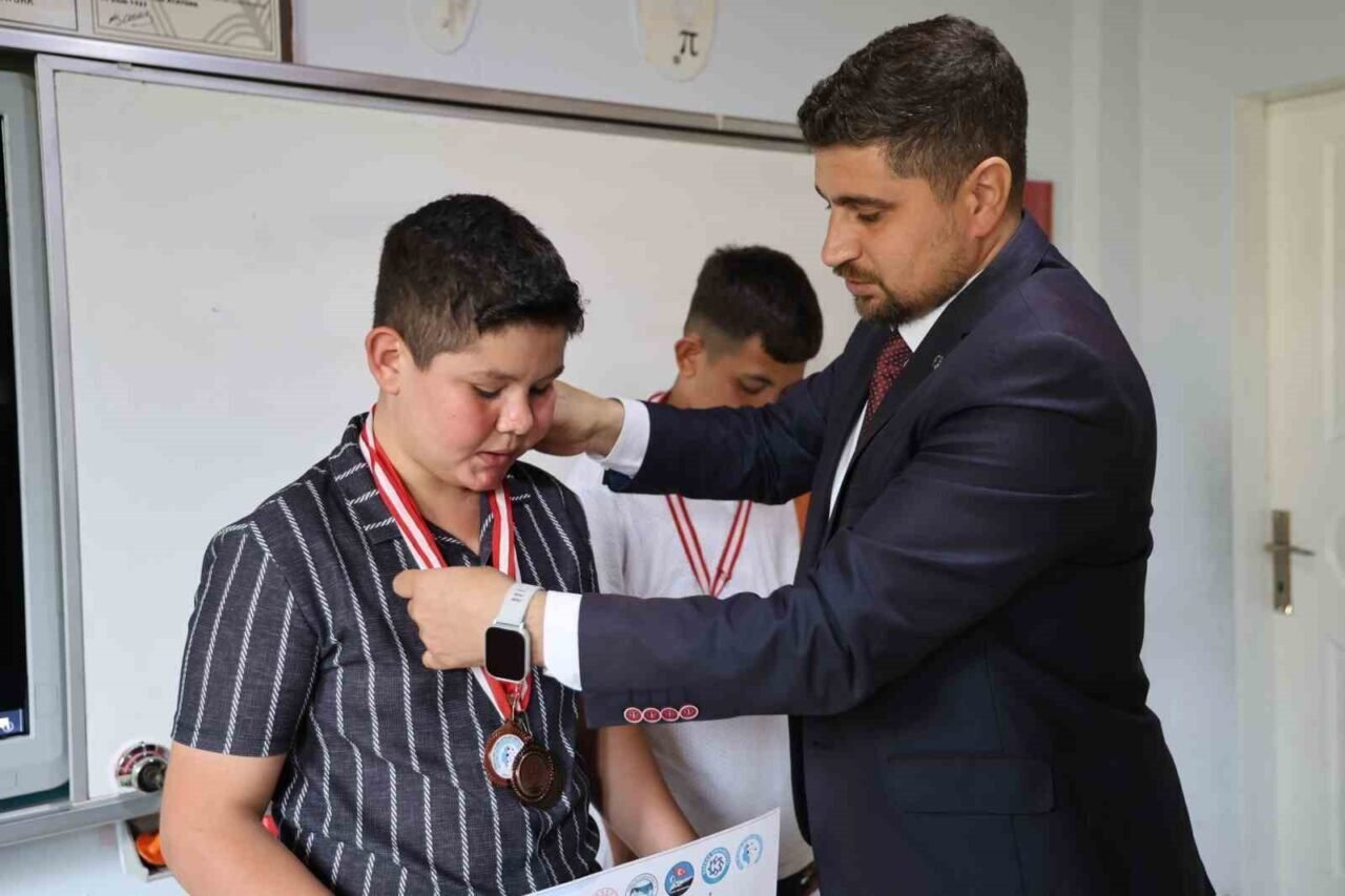 DERSE İLGİSİZLİKLERİNİ KEŞFEDEN ÖĞRETMENLERİ SAYESİNDE ZEKA OYUNLARINDA TÜRKİYE DERECESİ YAPTILAR MUHAMMED ALİ ÖZDEMİR’E ÖĞRETMENİ MADALYASINI TAKDI.