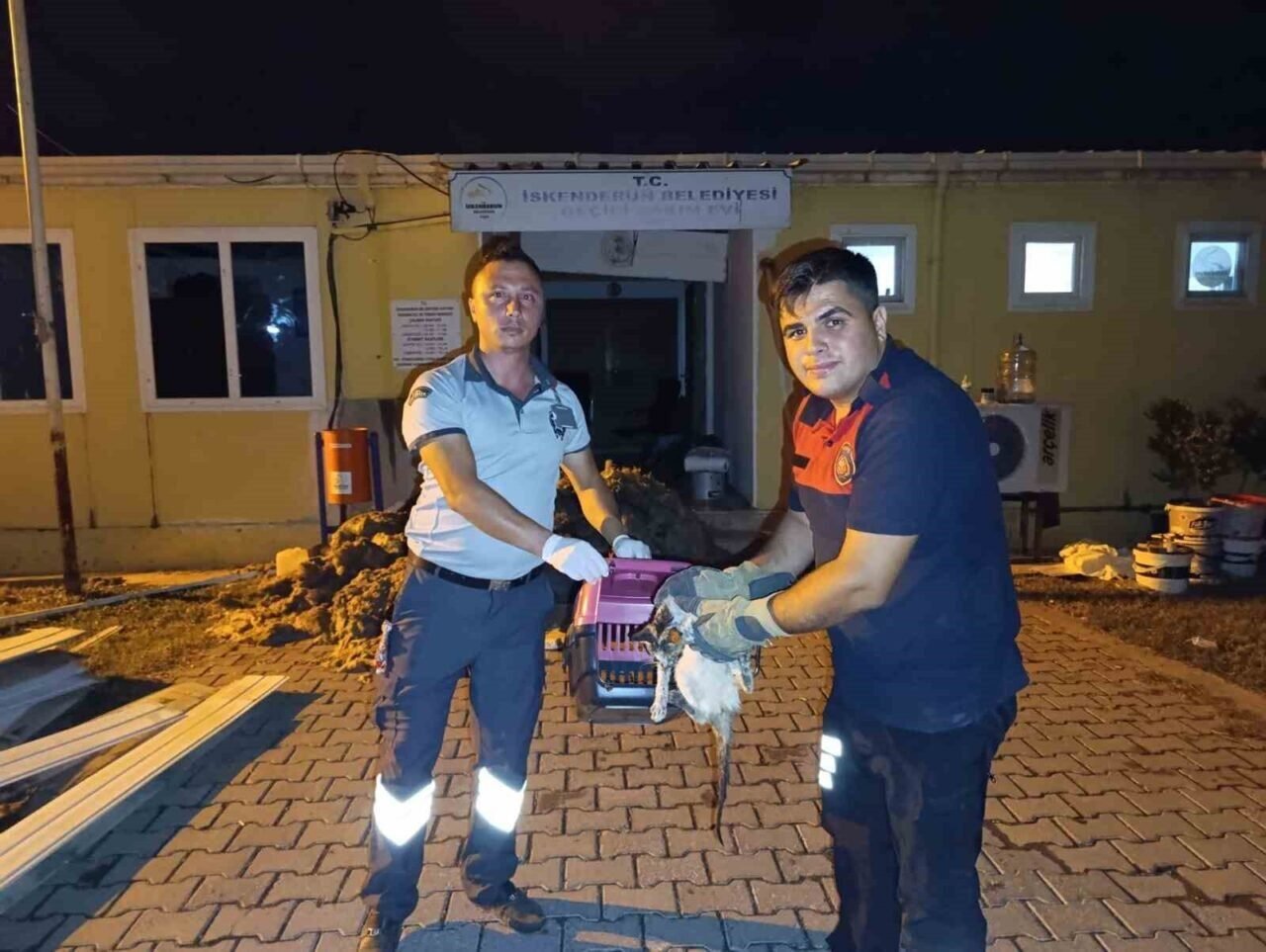 Olay, Çay Mahallesi Muammer Aksoy Caddesi’nde meydana geldi. Çevredeki vatandaşlar, su kanalından gelen sesleri duyarak durumu 112 Acil Çağrı Merkezi’ne bildirdi. İhbar üzerine bölgeye sevk edilen Hatay Büyükşehir Belediyesi İskenderun İtfaiye Müdürlüğü ekipleri, kısa sürede olay yerine gelerek kurtarma çalışması başlattı. Ekiplerin titiz çalışması sonucu kanaldan çıkarılan kedinin bitkin ve yaralı olduğu belirlendi. Durumu ağır olan kedi, veteriner hekimler tarafından tedavi altına alınmak üzere İskenderun Hayvan Barınağı’na teslim edildi.