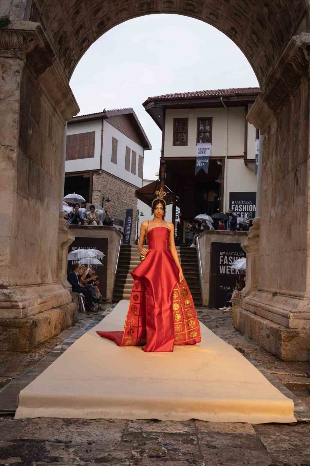Arso Group resmi sponsorluğunda sekizincisi düzenlenen Antalya Fashion Week (AFW) kapsamında antik Roma’nın izlerini taşıyan Hadrian Kapısı’nda özel bir podyum kuruldu. Özel davetli 250 kişiyle yerli ve yabancı basın mensuplarının izlediği defilede ünlü moda tasarımcısı Tuba Ergin, couture vizyonunun en görkemli yansıması olan “Gilded Symphony” koleksiyonunu sergilendi. Konuklar, yağan yağmura rağmen gerçekleştirilen defileyi kendilerine dağıtılan şemsiyelerin altında izlediler. Halka açık kısımda ise yüzlerce Antalyalı defileyi takip etti.